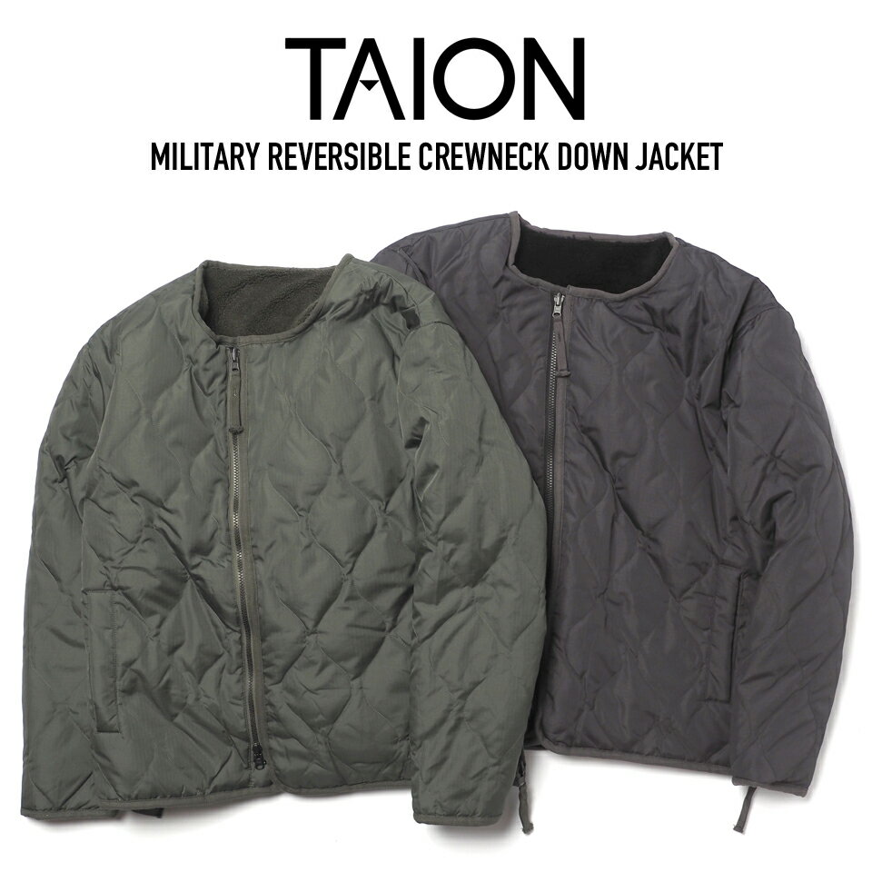 クーポンで15%OFF★TAION タイオン TAION-R104BML-1 MILITARY LINE リバーシブル クルーネック ダウンジャケット【C6】【Sx】【R】|キルティング ボア ライナー アウター インナーダウン 中綿 ミリタリー カーキ オリーブ メンズ