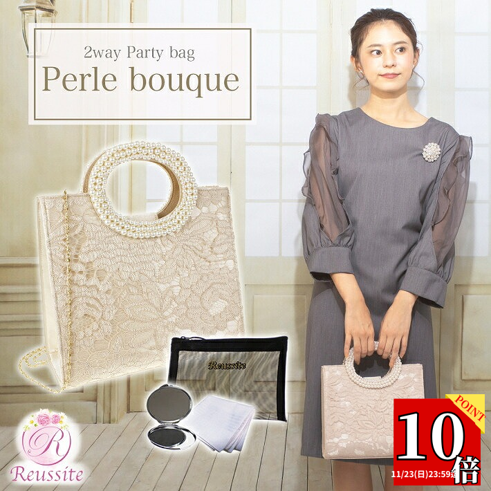 [Reussite] パーティーバック 結婚式 バッグ 大きめ 2way レース レディース ハンドバッグ ショルダーバッグ 披露宴 お呼ばれ/Perle bouque