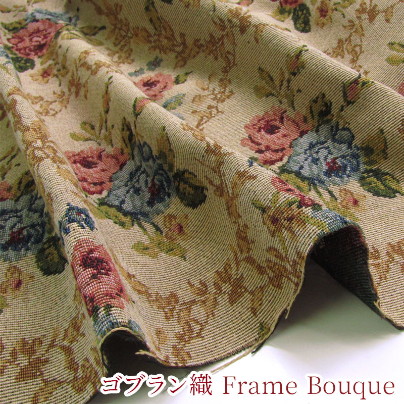 ゴブラン織 Frame Bouque(単位50cm)レトロ/花柄/フラワー/フレーム/ブーケ/楕円形/バラ/生地/布/綿/ポリエステル/織物