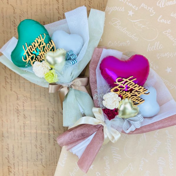 HBD mini bouquet バルーンギフト 花束タイプ 花束 ブーケ bouquet 誕生日 ハッピーバースデー バースデー サプライズ プレゼント お祝い ミニブーケ 小さめ ブラウン ピンク ブルー グリーン 渡しやすい ギフト 風船
