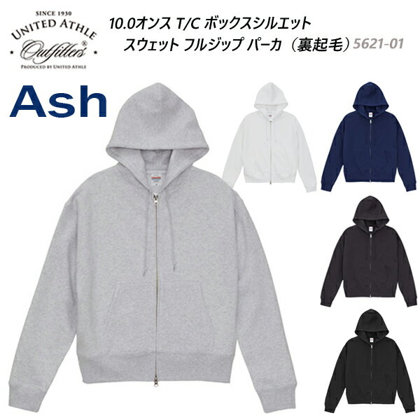 10.0オンス T/C ボックスシルエット スウェット フルジップ パーカ(裏起毛)5621-01 ストリート カジュアル メンズ 無地 YKK ダブルジッパー ユナイテッドアスレ United Athle