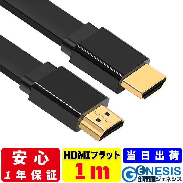 フラットHDMIケーブル 1m GSPWOER 当日出荷 ver2.0 50cm 4K 3D 薄型 金メッキ端子 HighSpeedCable ブラック 4K 3D モニターケーブル ブルーレイ DVDプレーヤー ゲーム機 ps4 ps5