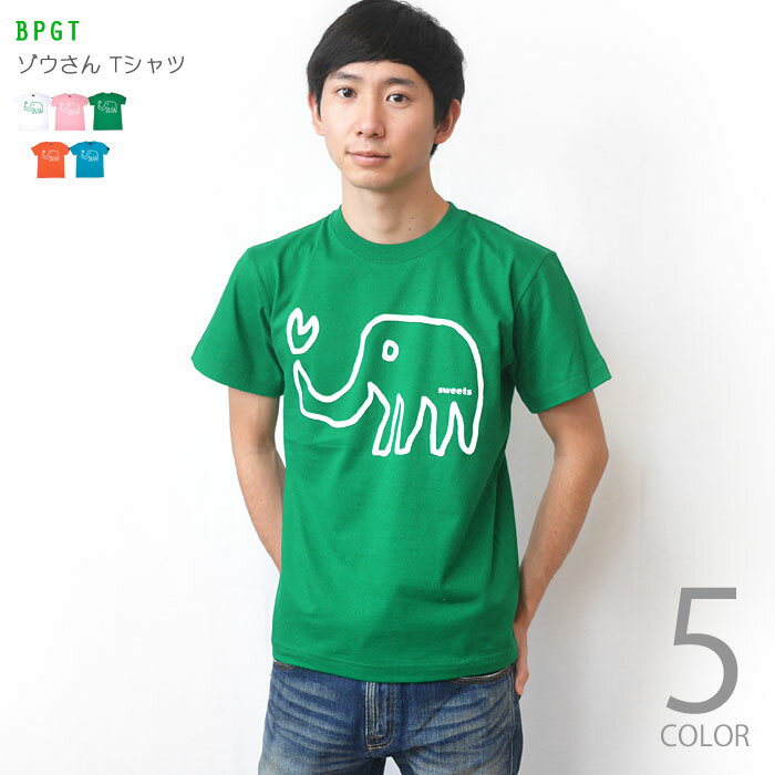 ゾウさん Tシャツ (グリーン) BPGT sp018tee-gr -X-半袖 緑色 みどりトップス 可愛い POP おしゃれ ロゴ ぞう 象柄 アニマル イラスト 落書き カジュアル メンズ レディース ペア 男女兼用 オリジナル プリントTee 大きいサイズ コットン綿100%【RCP】
