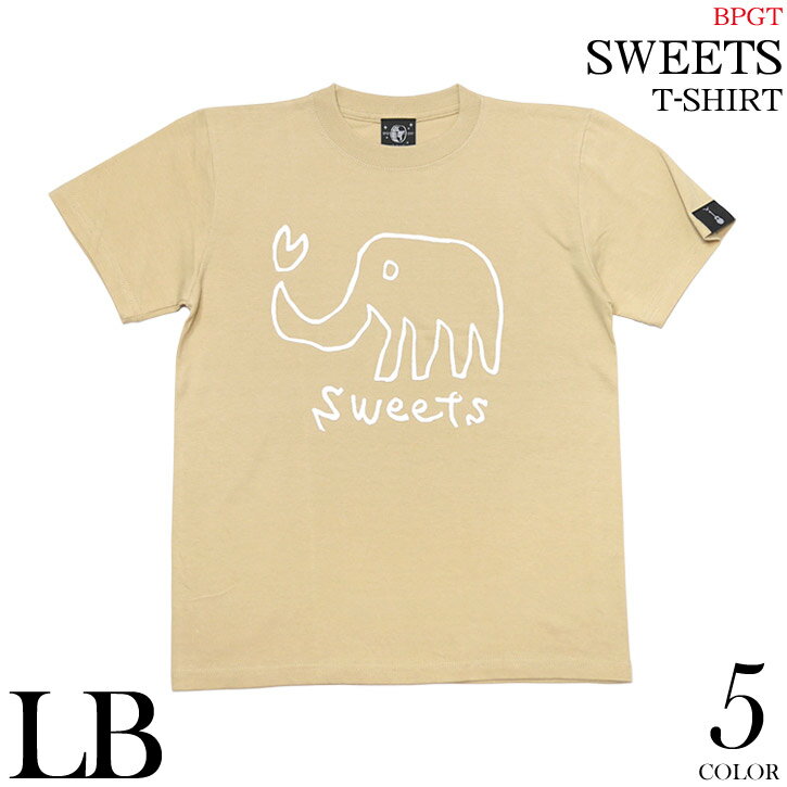 sweets Tシャツ (ライトベージュ) BPGT sp013tee-lb -X- 半袖 肌色 象さん ゾウ ぞう アニマル 動物柄 イラスト らくがき 落書き 可愛い かわいい カジュアル メンズ レディース ユニセックス 男女兼用 ゆったり 大きいサイズ コットン綿100% オリジナルブランド