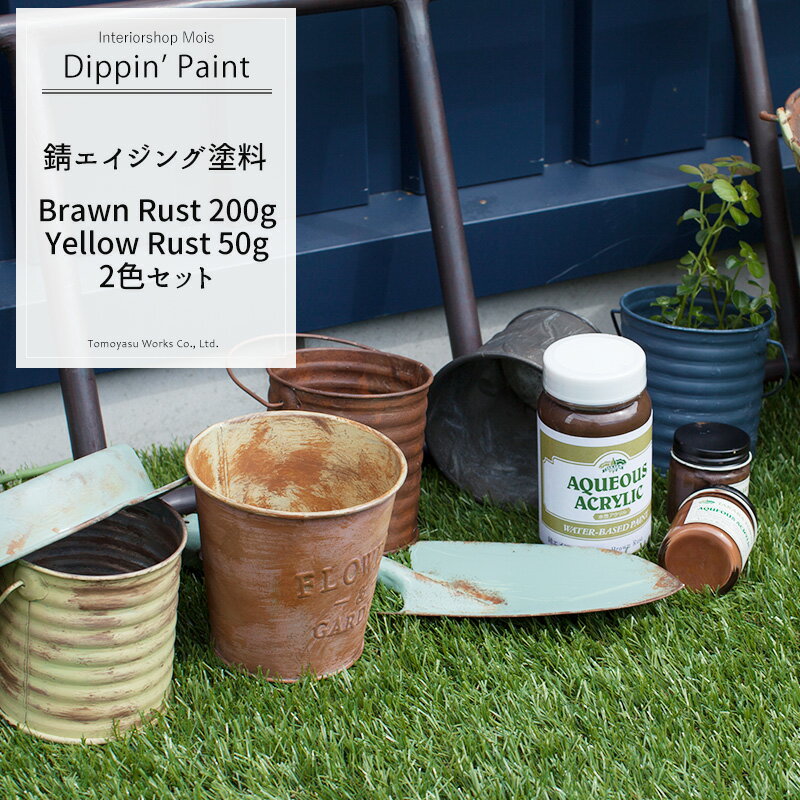 《即日出荷》 錆エイジングペイント Brawn Rust 200g×Yellow Rust 50g 2色 Lセット [Dippin' Paint 水性塗料 塗料 ペンキ リノベーション リメイク 艶消し マットカラー DIY 塗装DIY 補修 壁 リメイク 錆エイジング エイジング塗装 リメカン] H-N-0