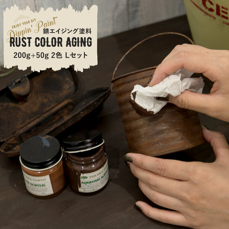 [P10倍 4日20時〜4時間+2000円OFFクーポン]水性アクリル塗料 錆エイジングペイント RUST COLOR AGING Brawn Rust 200g Yellow Rust 50g 2色 Lセット 塗料 ペンキ 絵具 ディッピンペイント diy リメイク 屋外 艶消し 艶無し マットカラー さび サビ 錆び H-N-0