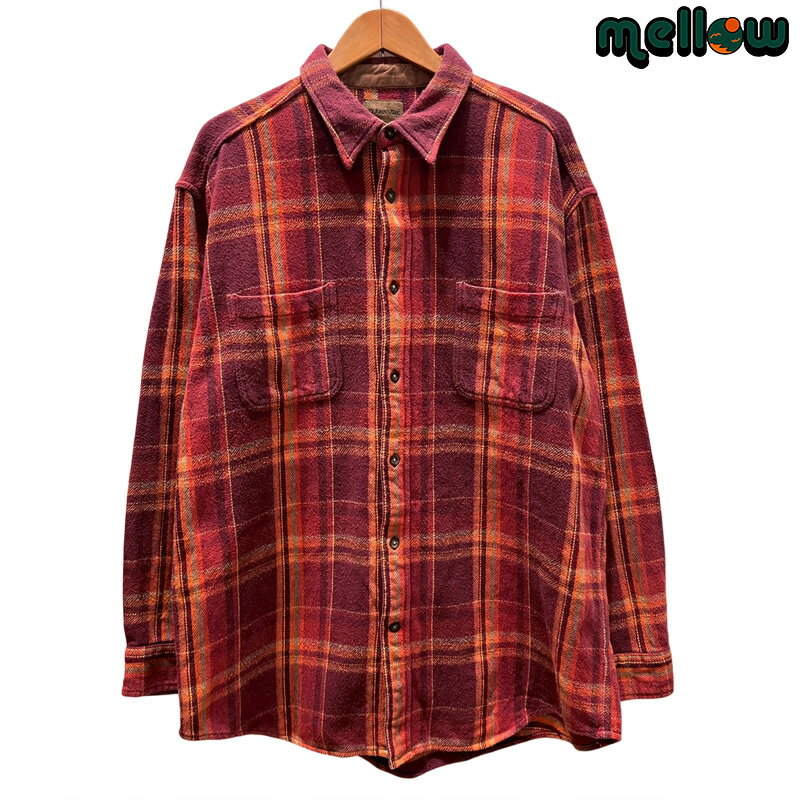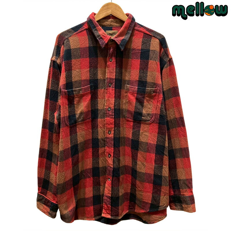 ST JOHN'S BAY フランネルシャツ チェック柄 BRAWNY エンジ系×オレンジ×ベージュ サイズ:メンズ XL セントジョンズベイ 長袖 ネルシャツ ロングスリーブ 古着 【中古】