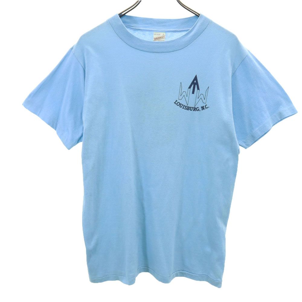 古着 BRAWNY USA製 両面プリント 半袖 Tシャツ M ブルー系 メンズ 【中古】 【PD】