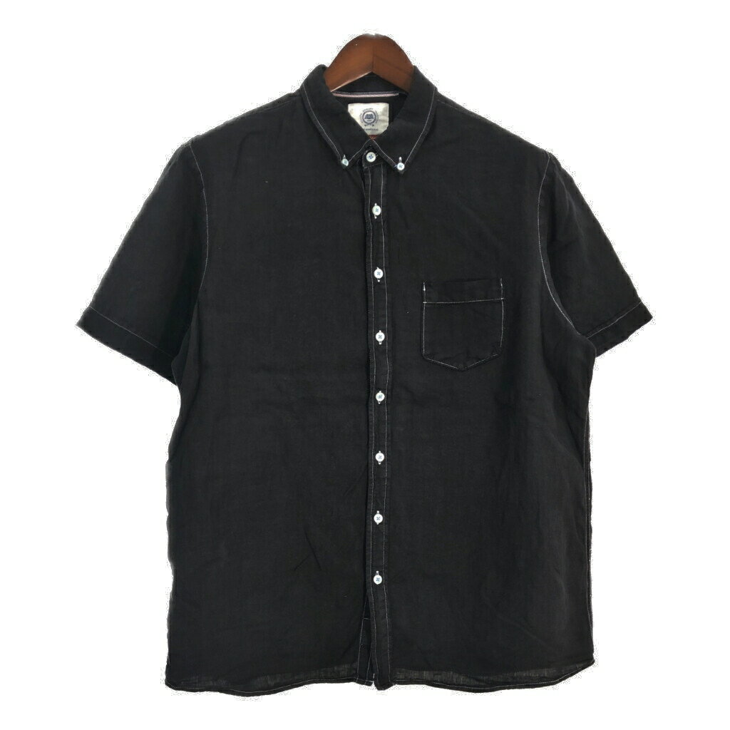 BRAX 半袖リネンシャツ 後染め ブラック (メンズ XL) 中古 古着 T4600