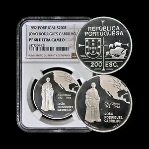 ポルトガル。 1992、200 エスクード、シルバー - NGC PF68 - カブリリョ、カリフォルニア