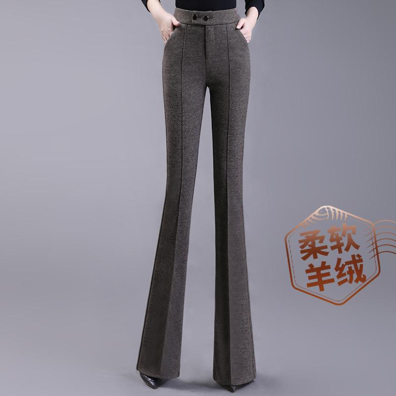 パンツ レディース ボトムス 秋冬 ブーツ カット ハイウエスト 厚手 暖かい ドレープ スリム ウール フレアパンツ