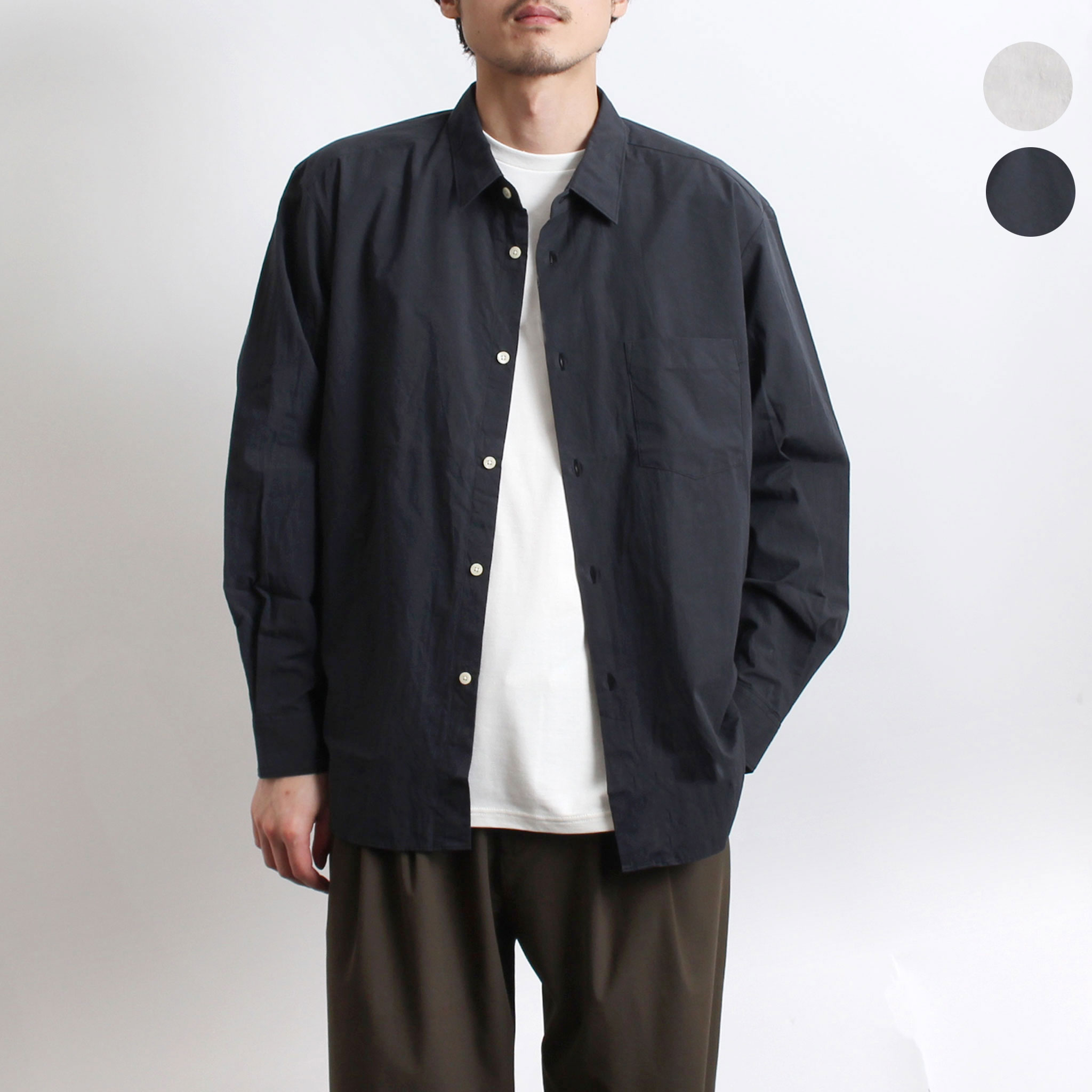 【BROAD CLOTH LOOSE FIT RC SHIRT】ハリのある質感で肌触りが柔らかなレギュラーカラーシャツ。LOOSE FITのパターンを採用しており、オーバーサイズほどゆったりしすぎていない、脇からややAラインに見えるきれいなシルエット。生地に施された近江晒(おうみさらし)加工は、グッと洗練された雰囲気が出るシワ・ヴィンテージ感が特徴的です。スタイルメンズ 長袖シャツカラー[全2色]LT.GREY - ライトグレーSUMIKURO - ブラック素材COTTON(コットン)100%製造国日本▼サイズ着丈身幅袖丈肩幅273.55859473776160.548.5478.5636351.5メーカー希望小売価格はメーカー商品タグに基づいて掲載しています
