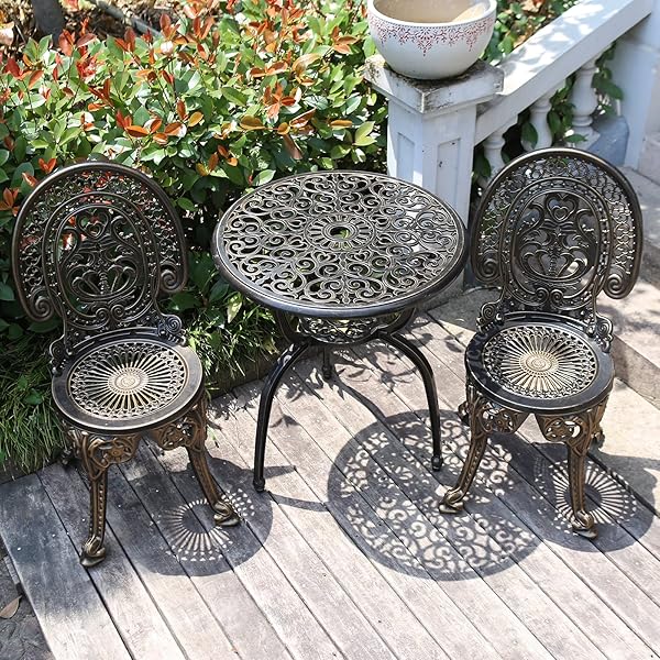 【送料無料】庭鋳造アルミテーブルチェアセット金属家具バルコニー1テーブル2椅子居酒屋テーブルチェア クラウンタイプ屋内外使用 (Bronzed)
