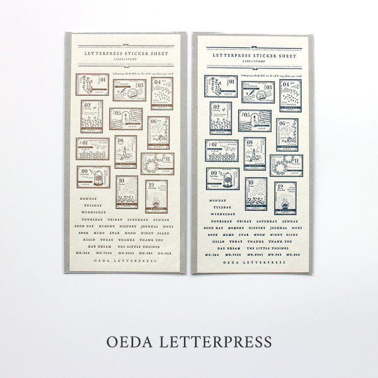 当店ではこんな用途でお使い頂けるギフトをご用意しております シール コラージュ ステッカー ラッピング デコレーション アレンジ ダイカット スクラップブッキング おしゃれ 手帳デコ 日記 ジャンクジャーナル スマホカバー デコ マステシール 大量 活版印刷 活版 フレーム コラージュ ミシン目 メッセージカード ラベル メモ メモカード メモ帳 紙物 高級紙 ペーパー スタンプ シール ステッカー テープ 便箋 封筒 手紙 レターセット OEDA LETTERPRESS 作家 デザイナーズ レトロ かわいい おしゃれ ほっこり 実用的 北欧 和風 日本風 シンプル プレゼント 贈り物 ギフト 母の日 クリスマス 敬老の日 お誕生日 バースデー 新築祝い 新居祝い 開店祝い 改築祝い 開園祝い 開校祝い 結婚祝い 引っ越し祝い 転居祝い 開院祝いOEDA LETTERPRESSsticker sheet STAMP | ステッカーシート 1~12の数字が入った切手のいろいろなテキストが入ったデザインです。 シートタイプのシールなので自由に切り取り、ダイレクトに貼って使っていただけるのが便利な商品です。 シールとしてはしっかりとした厚みがあるので、コラージュやデコレーションにもしっかりとした存在感を出してくれます。 variation ls001b Bronze ls001d Darkblue \ 他のsticker / sticker sheet STAMP | ステッカーシート バリエーション ls001b Bronze ls001d Darkblue 仕様 シートサイズ:96×210mm 1枚入り ■ご注意下さい ・本体デザイン、パッケージは変更になる場合があります。 ・表示の寸法、重量は目安です。実際の商品とは誤差がある可能性があります。 ・掲載の画像は、お使いのブラウザやディスプレイの影響により、実際の商品とは色や風合いに誤差が生じる場合がございます。 大枝活版室 | OEDA LETTERPRESS 大阪府守口市にある小さな活版印刷所。 長い間眠っていた印刷所をデザイナーと印刷工で再生させました。 活版印刷の技術を生かして、暮らしに寄り添う紙文具を作っています。 その他、OEDA LETTERPRESSさんの作品はこちら