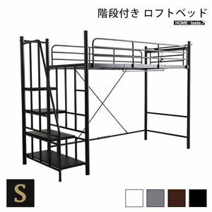 【素材】 スチールパイプ 【商品サイズ】 ハイタイプ:(約)幅255cmx奥行き100cmx高さ129.5cm ミドルタイプ:(約)幅255cmx奥行き100cmx高さ173.5cm 【商品重量】 商品重量:(約)83kg 【梱包サイズ】 (1/3)(約)134x109x14.5cm(7.5才) (2/3)(約)107.5x107.5x14.5cm(6.2才) (3/3)(約)194x42x9cm(2.7才) 【梱包重量】 梱包重量:(約)85kg 【生産国】 中国 【カラー】 ブラック ブラウン シルバー ホワイト 【その他】 ※耐荷重 : 〜約120kg階段付きヴィンテージロフトベッド【BROOK】【注意事項】メーカー直送の商品となりますので、「代金引換」払いは不可となります。ご了承ください。お届け先が、北海道、沖縄、離島になる場合、別途送料が必要になる場合がございます。