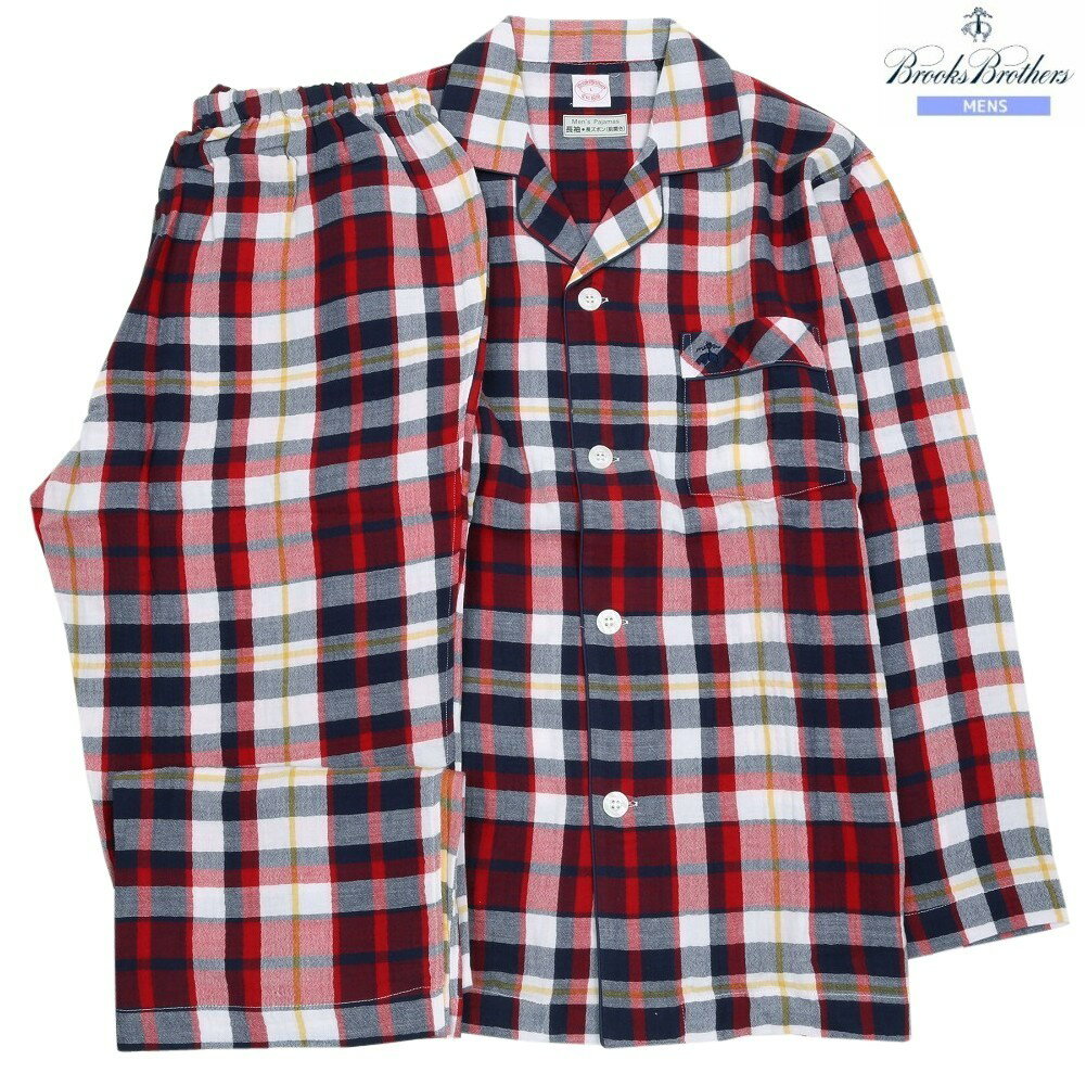 パジャマ ブルックスブラザーズ Brooks Brothers メンズ ブランド ギフト プレゼント ラッピング無料 春夏 ガーゼ素材 チェック 前開き 紳士 長袖 長ズボン 赤 23/5/4 250523