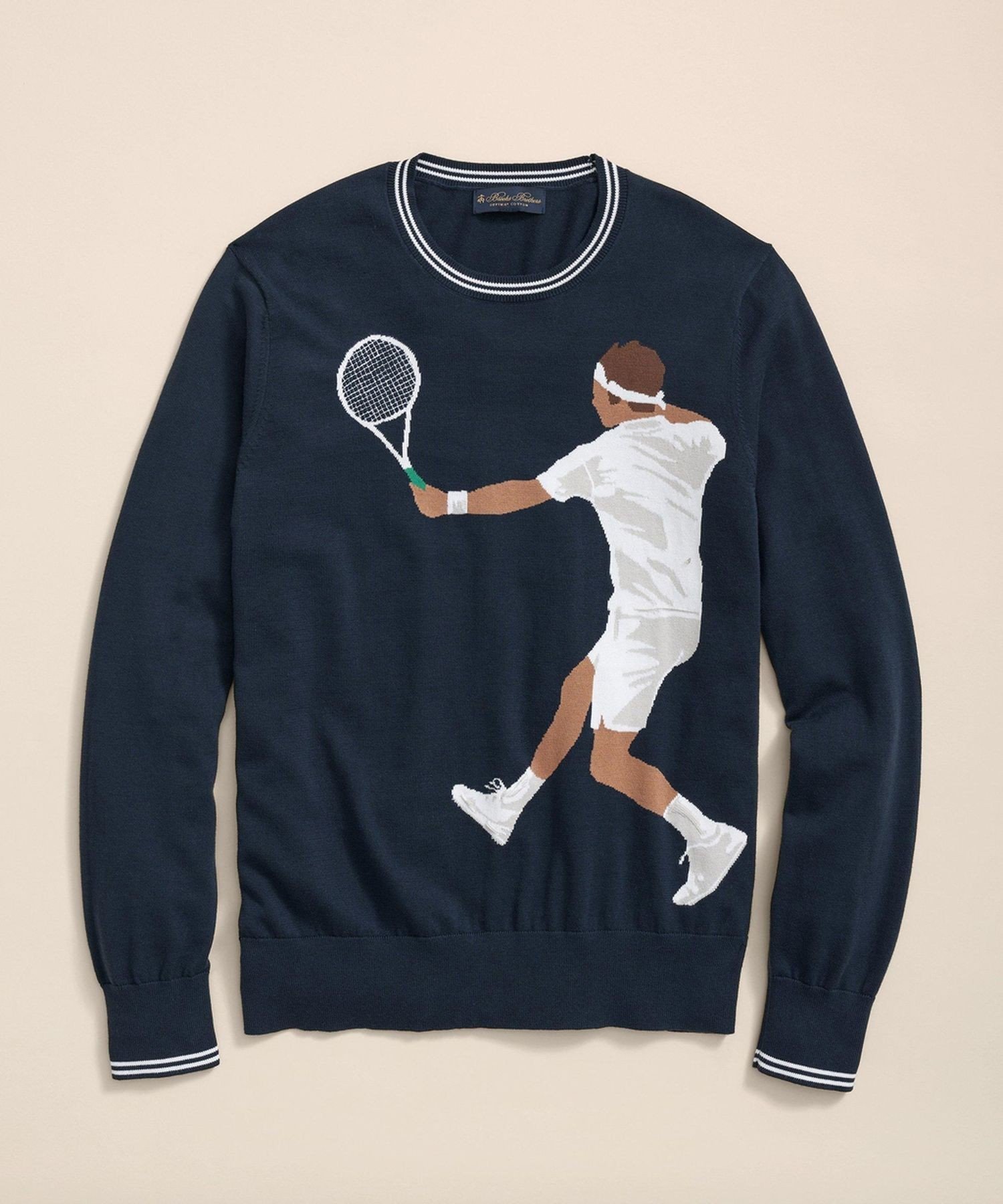 【SALE/50%OFF】BROOKS BROTHERS スーピマコットン テニスプレイヤーインターシャ クルーネックセーター ブルックス ブラザーズ トップス ニット ネイビー【送料無料】