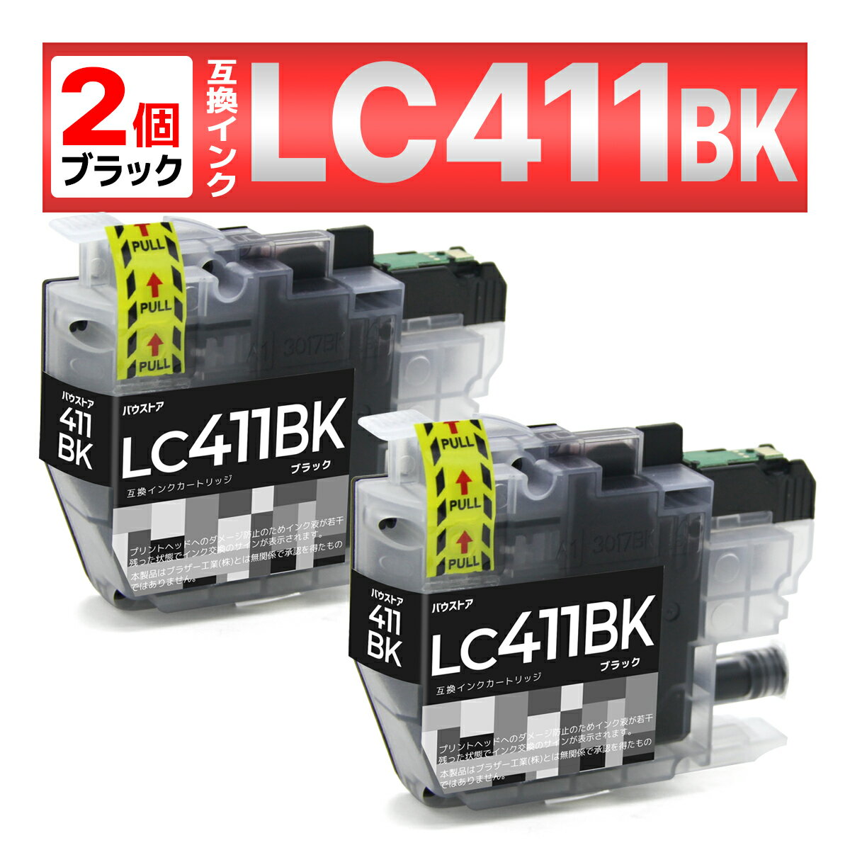 LC411BK LC411 ブラック 互換インク 2個 brother DCP-J928N DCP-J926N DCP-J528N DCP-J526N DCP-J915N DCP-J914N DCP-J1800N MFC-J905N MFC-J904N MFC-J939DN MFC-J939DWN MFC-J739DN MFC-J739DWN