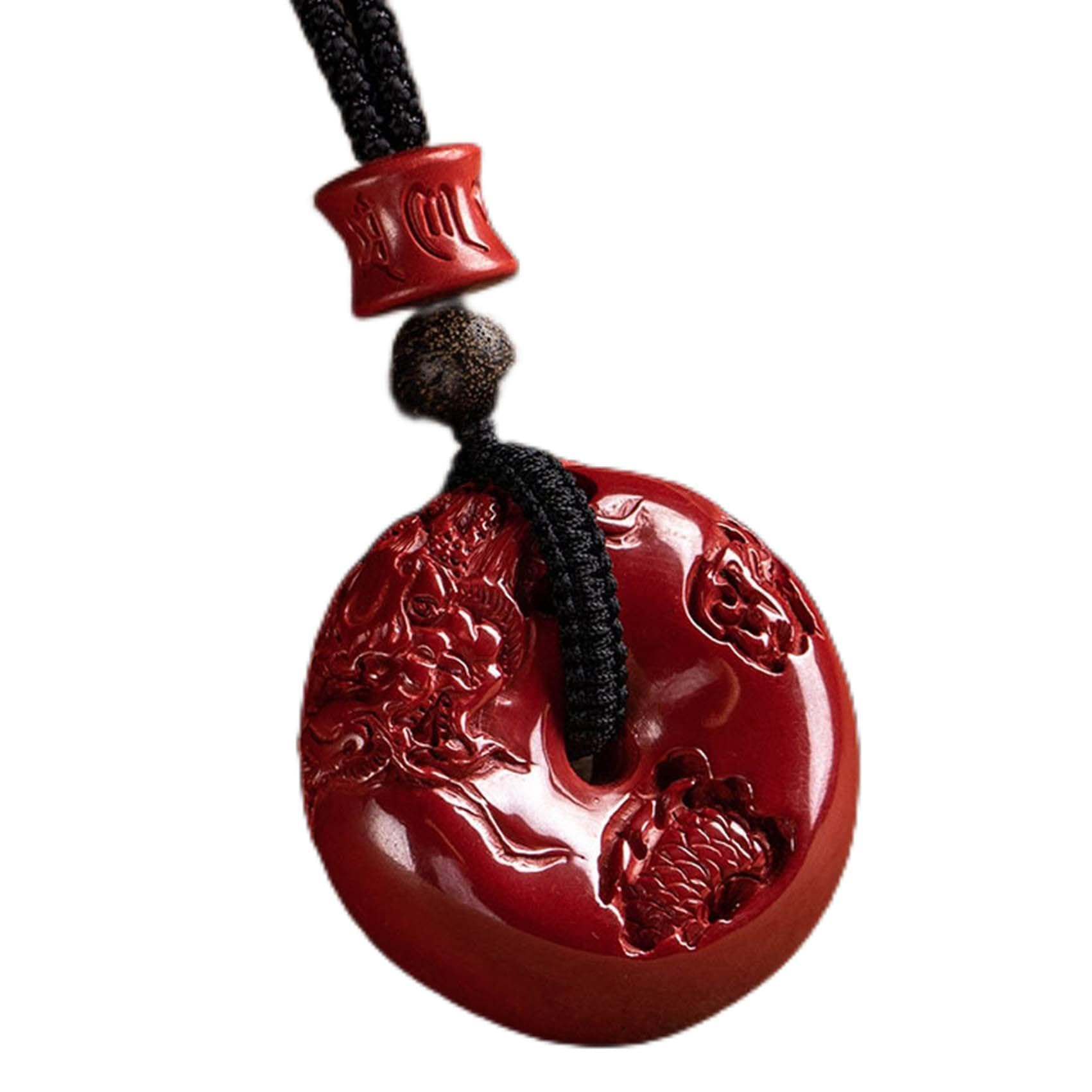 風水お守りネックレス 辰砂水晶石ネックレス ハーモニーバックル チャーム ドラゴンペンダントネックレス お守り 水晶ネックレス 黒紐 調節可能 レディース メンズ 開運 ファッション小物