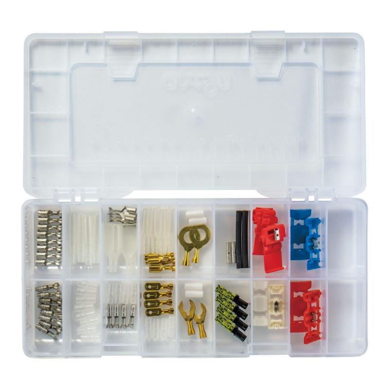 エーモン(amon) ターミナルセット 接続・分岐・電源取り出しができる端子のセット 3361接続・分岐・電源取り出しができる端子セット。細い線に対応できる端子・配線コネクター・接続コネクターも入っている。小さな端子が取り出し易い底面R形状。収納・整理に便利な透明ケース。ケースは予備ポケットもあり、フタに便利なスケール付き(15cm目盛り(目安))。【セット内容】ギボシ端子/スリーブ(オス・メス)・・・8セット・ギボシ端子ダブル/スリーブ(オス・メス)・・・2セット・平型端子《250型》/スリーブ(オス・メス)・・・4セットクワ型端子《φ6》/スリーブ・・・2セット・丸型端子《φ8》/スリーブ・・・2セット・配線コネクター《白》・・・2個・配線コネクター《薄赤》・・・2個配線コネクター《赤》・・・2個・配線コネクター《青》・・・2個接続コネクター・・・2セット(4個)・圧縮接続端子収縮チューブ付・・・2セット
