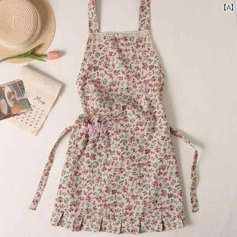 エプロン レディース かわいい 韓国 田園 風の 小さい 花柄 コットン 生地 ホルターネック レース レディース ウエスト キッチン スカート エプロン 防汚 家事