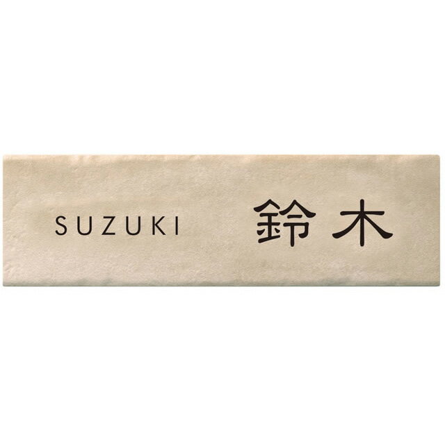■サイズ約:幅230mm×高さ70mm×奥行9mm ■重量:310g ■材質:セラミックタイル ■印字:サンドブラスト ■見本書体:漢字/隷書体、ローマ字/フーツラ体 ■見本塗装:文字色/黒 ■付属品:スタッド金具 ■施工方法について 壁面が平面の場合は施工方法Aタイプ(両面テープと接着剤が必要) 壁面に凹凸がある場合は施工方法Eタイプ(スタッド金具と接着剤が必要) ※表札取付け用の、両面テープ、接着剤は付属しておりません。(別売) ※お使いのPCやスマホの環境によっては色の見え方が変わります。 ※当商品はひとつひとつ手作りで製作しているため、外形や厚みなどのサイズのズレ、歪み・反り、外形の凹凸、ザラつき、色ムラ、写真見本とは色合い・光沢・模様の違い・斑状異物・ピンホール等の生じる場合がございますが、これは素材の特性と味わいとしてご理解ください。 ※当商品は仕様上、差し支えのない範囲で裏面、小口面の欠け、かすれ模様について許容しています。 ■出荷目安:7〜10営業日(レイアウト承認後) ■送料無料 ※ご注文後、表札制作前に校正レイアウトをメールにて送らせて頂きます。内容をご確認の上、必ずご返信ください。表札ご注文の流れ 当店:ご注文を頂いた後に、ご指定の印字文字でレイアウト(校正)を作成します。 当店:レイアウトはPDFファイルにてメールでお送りいたします。 お客様:レイアウトの内容に不備がない事をご確認の上、ご承認メールの返信をお願いします。 ※レイアウトの修正は1回のみとなります。2回目以降の修正は受け付け出来かねます。※オーダー商品の為、レイアウト承認後のキャンセルは出来かねますのでご了承下さい。通常レイアウトは2〜3営業日以内にお送りいたします。3営業日以上経ってもレイアウトが到着していない場合は、メールがエラーになっている場合がございます。その際はお手数ですが当店にお問い合わせいただけますようお願い致します。また、迷惑メールファルダーに振り分けられている場合がございますので、未着の場合は一度迷惑メールのご確認をお願い致します。※当店では規格サイズのみの対応となっており、別寸サイズに対応することが出来かねます。 表札メーカー直販なので安心&安全 お客様のご要望に合わせて一つ一つ丁寧に自社工場で製作しております。