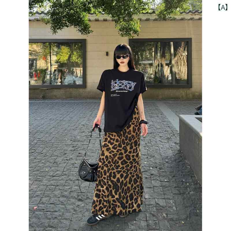 レディース スカート ハイウエスト 早春に ぴったりの アメリカン レトロ ホット ガール ヒョウ 柄 スカート ハイウエストで スリム な ヒップ ラップ ロング
