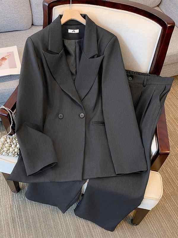 セットアップ レディース 大きいサイズ 高級感 ビジネス オフィス 通勤 TR素材 テーラードジャケット ロングパンツ ストレートシルエット 長袖 春秋冬
