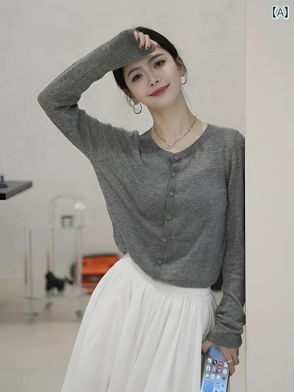 夏の 新作 テンセル ウール ニットカーディガン レディース ゆったり ショート超 薄型 日焼け 防止 エアコン シャツ 無地 アウター トップススタイル: 通勤用通勤者:韓国人服装スタイル: ゆったりとした素材: ウール袖タイプ:レギュラー生地技術:ニットスタイル: カーディガン対象年齢:20~50歳組み合わせ形式:単品原産地:中国厚さ:極薄上場年と時期:2025年夏袖丈:長袖襟:ロースクープネック長さ: ショート衣服の前立て:シングルブレスト柄:無地サイズ: 2XL、S、M、L、XL色の分類:グレー