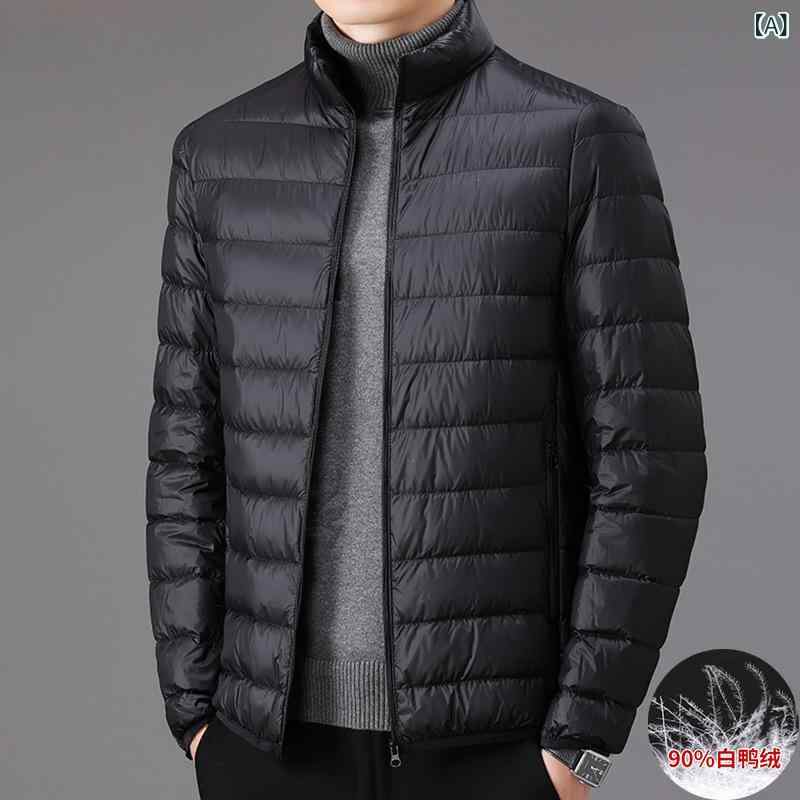 2024 冬の 新型 軽薄 ダウン ジャケット 男性 純 色 軽やか 立 襟 90 白 鴨 パイル ショート 保温 コート T