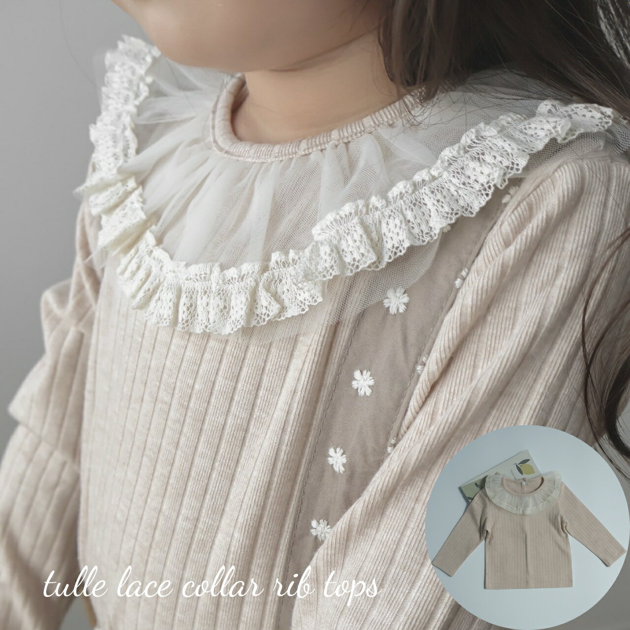キッズ 女の子 トップス tulle lace collar rib tops チュール レース 襟 長袖 リブ 重ね着 レイヤード コットン 可愛い 70cm 80cm 90cm 100cm 輸入 子供服 春 秋 冬 送料無料