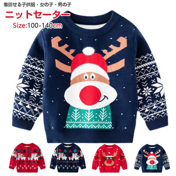 【クリスマス雰囲気満載♪】ニットセーター 供服 キッズセーター 秋冬物 パーカー 可愛い サンタ服 クリスマスコスチューム トップス トレーナー スウェット 長袖 キッズ 女の子 男の子 こども服 子ども服 トップス 100-140CM 選べる9色 通園 通学 送料無料 着回し抜群