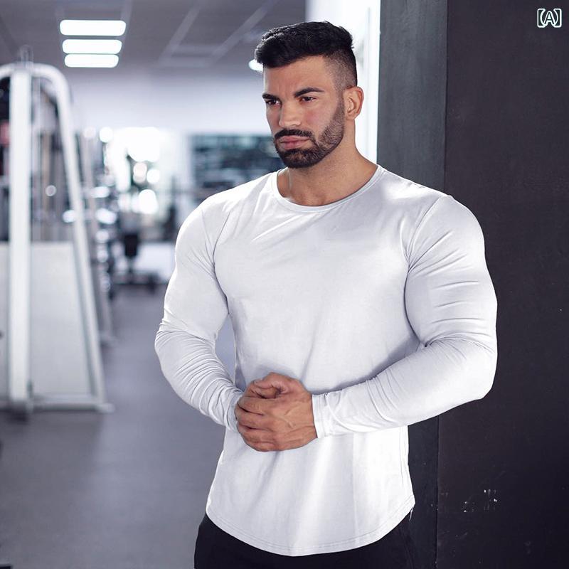 トップス メンズ 長袖 ジム フィットネス 筋トレ 筋肉 綿 タイツ スポーツ Tシャツ トレーニング 服 通気性 薄手 ランニング ラウンドネック ホワイト ブラック グレー