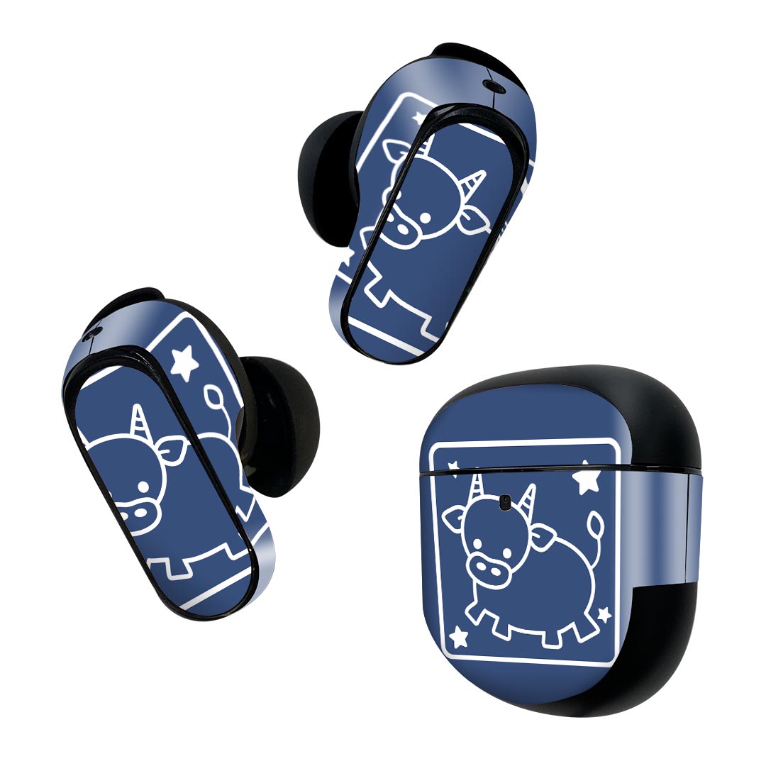 Bose QuietComfort Earbuds II 用 スキンシール ボーズ イヤバッズ2 用 ステッカー 本体3セット ケース1セット 保護 フィルム デコ 動物 キャラクター 青 003780