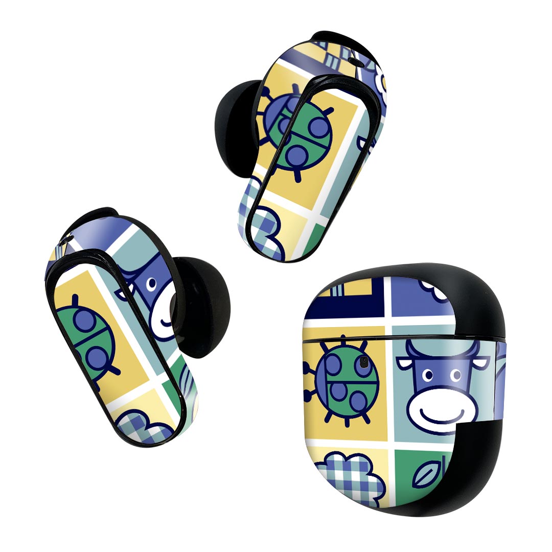 Bose QuietComfort Earbuds II 用 スキンシール ボーズ イヤバッズ2 用 ステッカー 本体3セット ケース1セット 保護 フィルム デコ 動物 キャラクター イラスト 002929