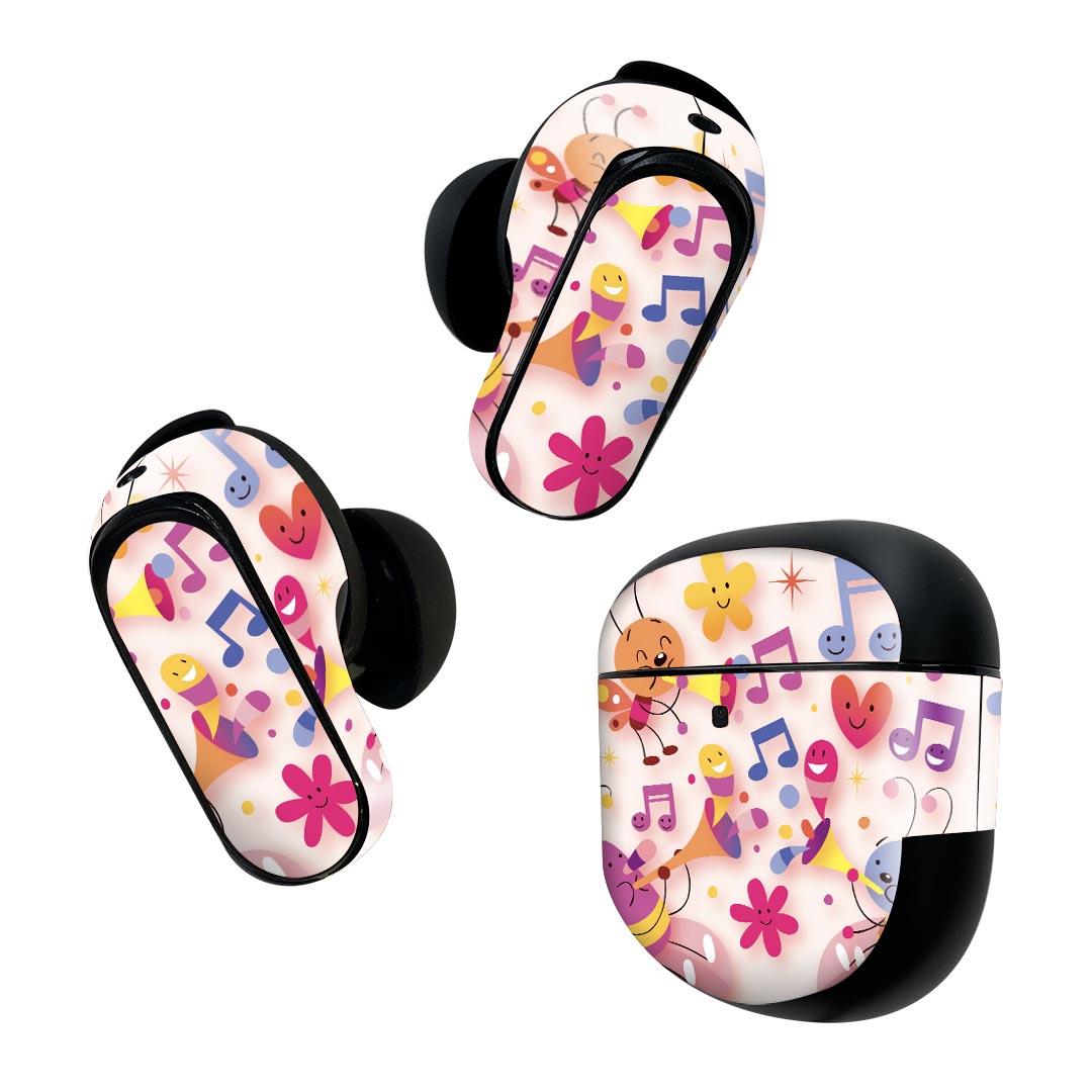 Bose QuietComfort Earbuds II 用 スキンシール ボーズ イヤバッズ2 用 ステッカー 本体3セット ケース1セット 保護 フィルム デコ 音符 蝶 キャラクター 006623