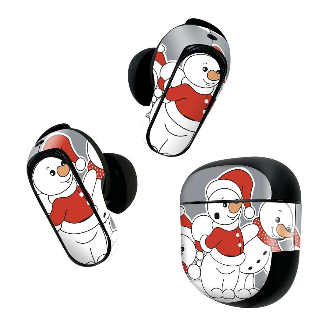 Bose QuietComfort Earbuds II 用 スキンシール ボーズ イヤバッズ2 用 ステッカー 本体3セット ケース1セット 保護 フィルム デコ 雪だるま キャラクター 006940