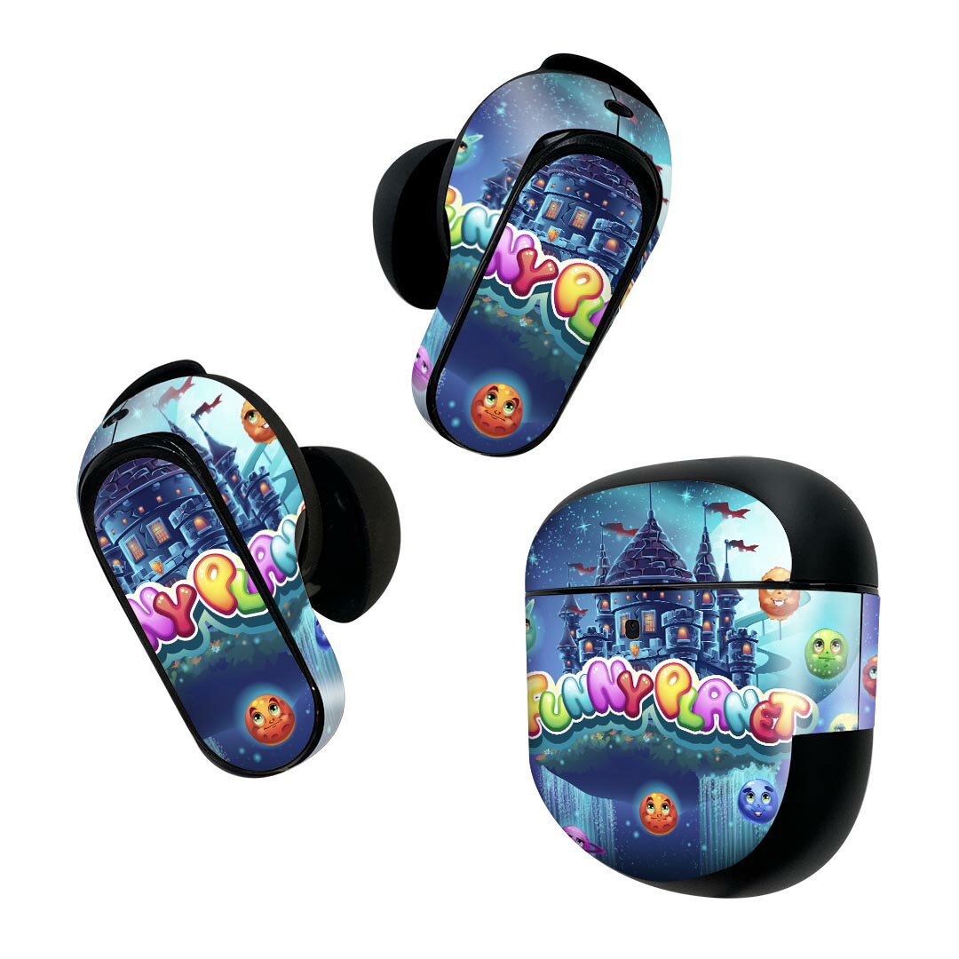 Bose QuietComfort Earbuds II 用 スキンシール ボーズ イヤバッズ2 用 ステッカー 本体3セット ケース1セット 保護 フィルム デコ イラスト 夜空 キャラクター 城 008829