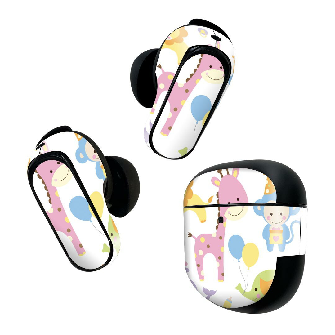 Bose QuietComfort Earbuds II 用 スキンシール ボーズ イヤバッズ2 用 ステッカー 本体3セット ケース1セット 保護 フィルム デコ きりん 動物 キャラクター 010941