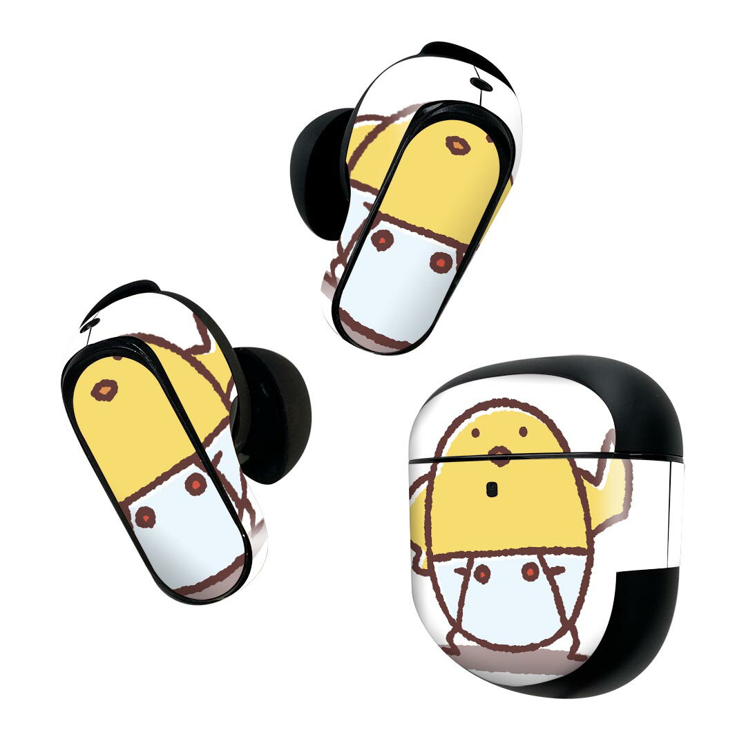 Bose QuietComfort Earbuds II 用 スキンシール ボーズ イヤバッズ2 用 ステッカー 本体3セット ケース1セット 保護 フィルム デコ 鳥 ひよこ キャラクター 009555