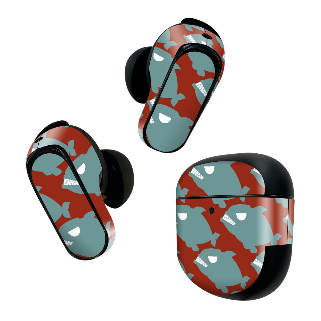 Bose QuietComfort Earbuds II 用 スキンシール ボーズ イヤバッズ2 用 ステッカー 本体3セット ケース1セット 保護 フィルム デコ 魚 生き物 キャラクター 011180