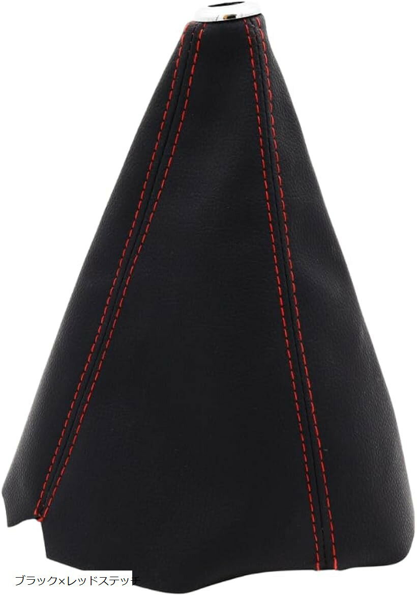 シフトノブカバー 革製 シフトブーツカバー シフトカバー 内装パーツ 汎用タイプ (ブラックxレッドステッチ)