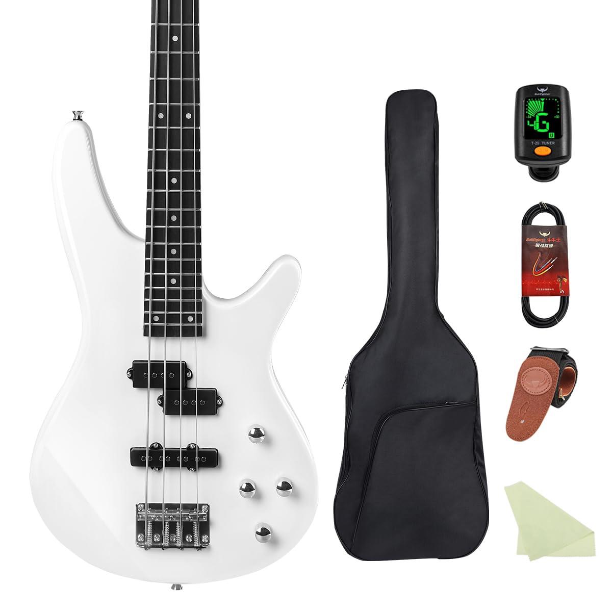 Bullfighterエレキベースセットアクセサリーセット付き、PB PJB 4弦bassエレキベース初心者入門パフォーマンスロック楽器 Bass (IB-white)