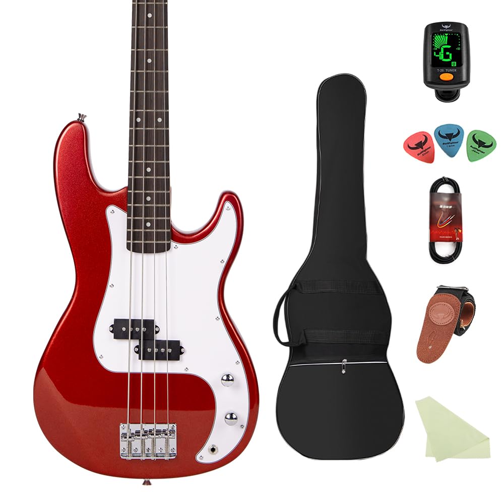 Bullfighterエレキベースセットアクセサリーセット付き、4弦bassエレキベース初心者入門パフォーマンスロック楽器 Bass (FD-Red)