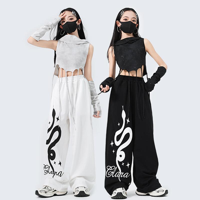 ダンス衣装 キッズ ジャズダンス ヒップホップ 女の子 練習着 セットアップ へそ出し トップス パンツ 袖カバー 帽子 ヘアアクセサリー付き 舞台 発表会