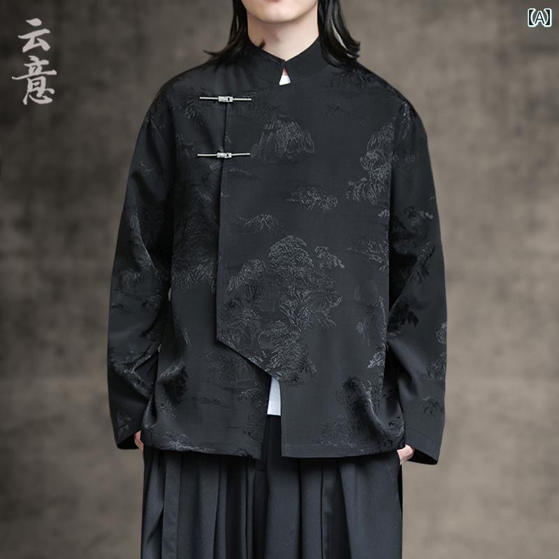 メンズ 夏 カジュアル トップス 中華風 冷感 唐装 春 薄手 通気性 レトロ 衣装 ジャケット 漢服