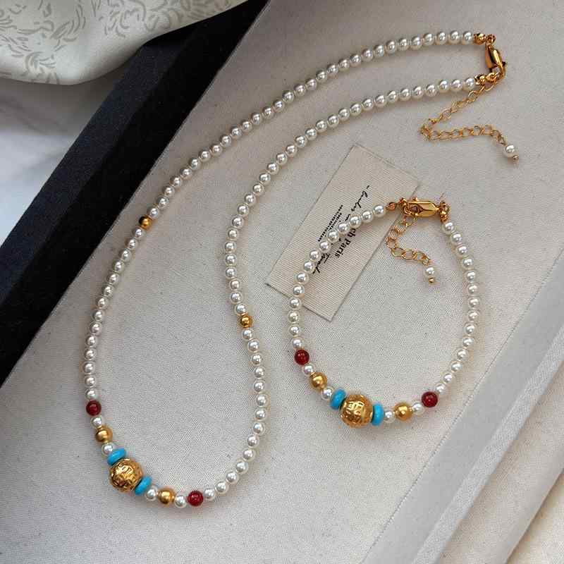 ネックレス レディース 女性用 パール パール 開運ビーズ ラッキーチャーム チャイニーズモダン 上品 軽やか 高級感 個性的 フレンチレトロ ヴィンテージ風 ゴールドカラー ペンダント アクセサリー 普段使い