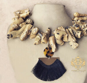 【送料無料】ジュエリー・アクセサリー ビッグジャイアントブリュットフォーヴブラックタイガーコーラルネックレスペンダントgros geante brut fauve noir tigre bambou corail collier imposant gland pendentif