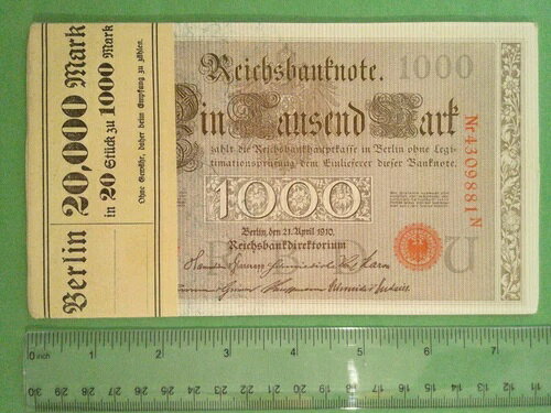1910年ドイツ1000ライヒスマルク - 未使用**20枚セット**、P44、銀行バンド付き