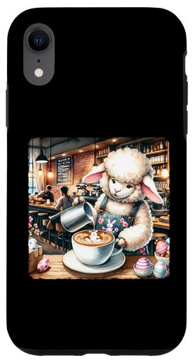 iPhoneXRイースターラムAsBaristaクラフトラテアート。コーヒーコージーエッグスマホケース